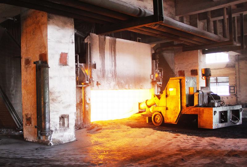 搗爐機正在對錳硅礦熱爐內(nèi)的料面進行維護