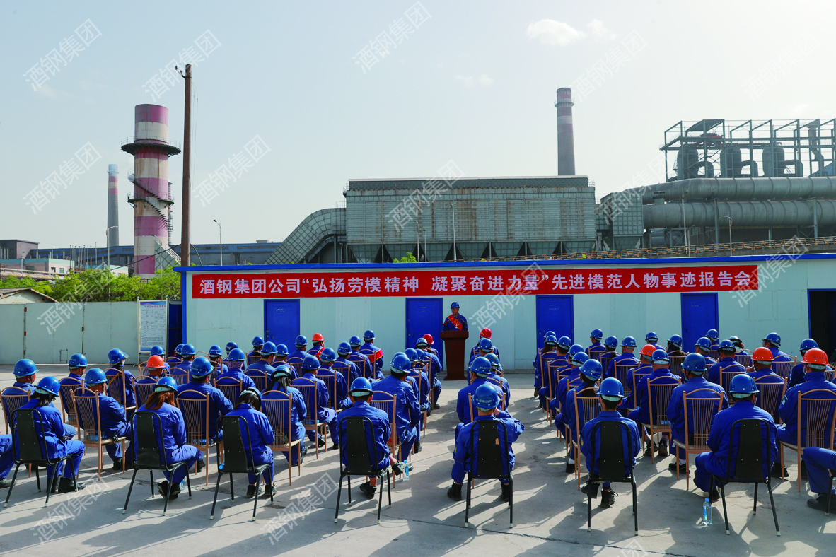 5月18日下午,酒鋼首場“弘揚勞模精神凝聚奮進力量”先進模范人物事跡報告會在筑鼎公司煉鐵三化升級改造公輔工程還建罐庫區(qū)工程項目現(xiàn)場舉行,來自筑鼎公司的60余名干部職工代表聆聽報告。